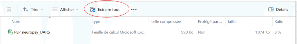 Cliquez sur « extraire tout » pour le décompresser et l’utiliser.